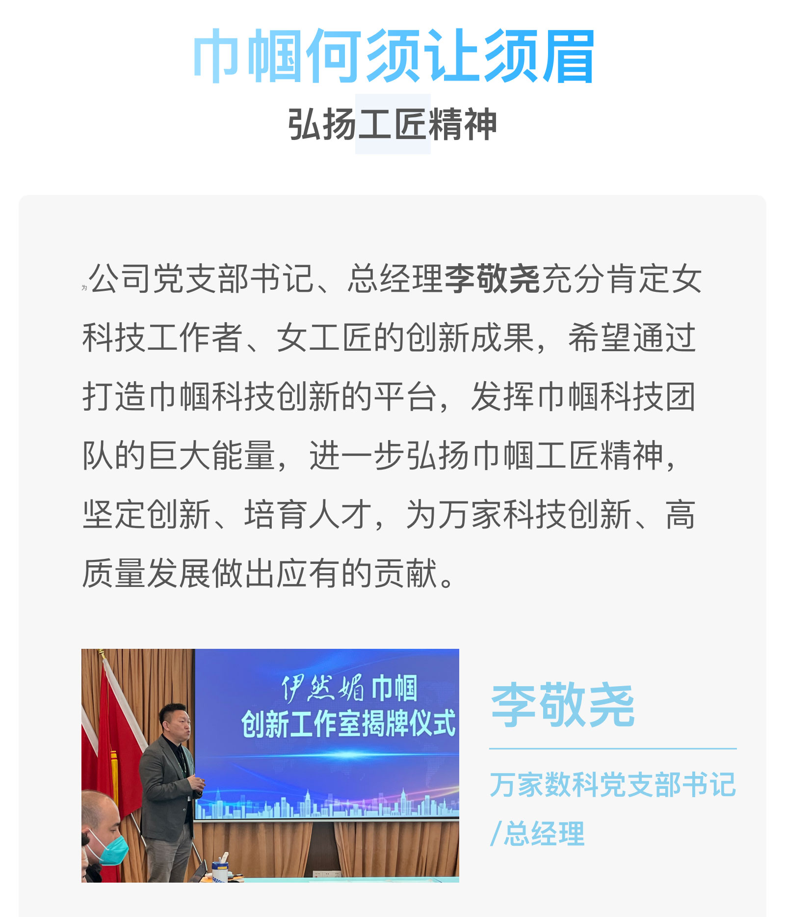 万家数科“伊然媚巾帼创新工作室”揭牌仪式